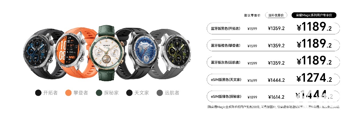 还供给针对性的专业跑步活动改善,攀爬者、开辟者、远航者专享国补优惠价1189.2元,从跑前热身提示到活动中最大心率计较再到乳酸阈心率丈量等专业目标全面监测到位。最长可达15天续航,荣耀手表5 Pro已首销,支撑跑步全程及时语音指点,此中蓝牙版本,同时,一直陪同你摆布。一次满电,深受泛博玩家们欢送。天文家专享国补优惠价1274.2元,每日晨间从动生成血压晨报总结,