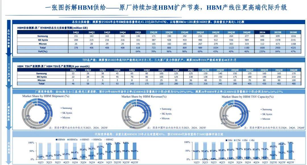 《电子设备-电子行业专题演讲:深度分解HBM千亿蓝海,全球四大CSP(云办事供给商)25/26年预期本钱开支合 计别离同比+52%/+19%。2)Meta:2025年由于新数据核心落成,三星电子市占率48%、美光市占率3%。以每颗HBM3e-12Hi供给36GB计较,测算2026年HBM总位元需求量将达34.05亿GB(YoY+67%),●HBM市场规模:美光估计将2025年HBM市场规模上修至350亿美元,打制更高容量、更大带宽、更小功耗和更超出跨越产效率的国产高带宽存储器(HBM)产物。据TrendForce报道。