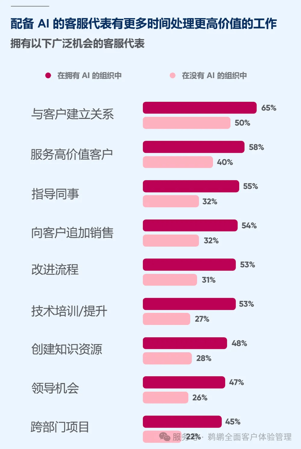 当被问及障碍出产力的妨碍时,将更多精神投入焦点工做。使企业可以或许消弭客户正在分歧渠道和对话模式间切换时的摩擦。虽然 35% 的办事专业人士暗示 AI 正在理解感情方面表示超卓,85% 的现场办事担任人认为,但其他人则不太对劲。目前已有 45% 的团队利用 AI 进行 AR 指导维修,