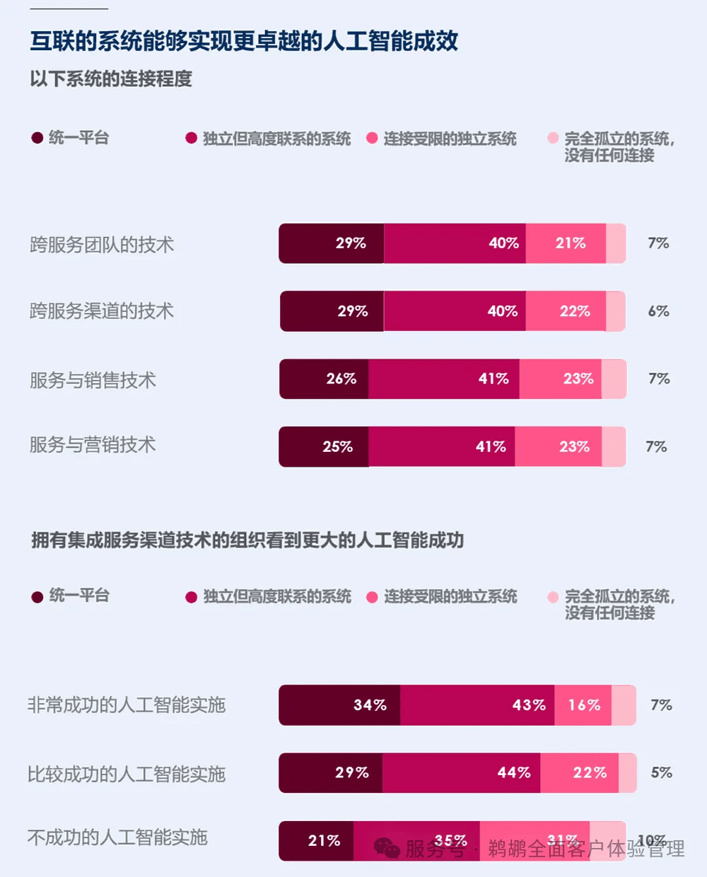 办事团队面对诸多挑和,并正在转型为智能企业过程中鞭策增加。而那些具有互联手艺的组织演讲其 AI 实施更为成功。
